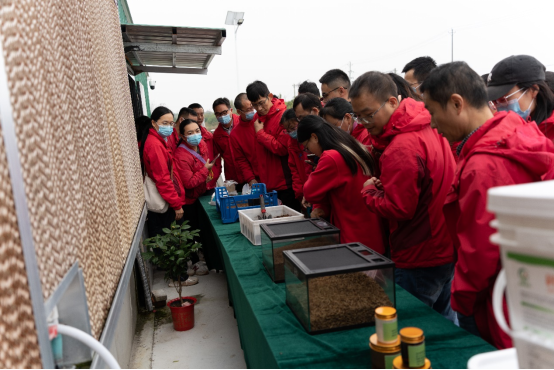 作為本次活動(dòng)的最后一站,也是此次活動(dòng)的重點(diǎn),大家來(lái)到集團(tuán)控股公司——武漢科微生物科技有限公司黑水虻產(chǎn)業(yè)化李集示范基地(以下簡(jiǎn)稱”科微生物”)。科微生物是集團(tuán)踐行“國(guó)家戰(zhàn)略有需要,產(chǎn)業(yè)市場(chǎng)有需求,科前布局有行動(dòng)”的發(fā)展思路,針對(duì)國(guó)家飼用蛋白大量依賴進(jìn)口的大背景下,緊密圍繞國(guó)家替代蛋白戰(zhàn)略,充分發(fā)揮黑水虻自身生活習(xí)性優(yōu)勢(shì),在解決畜禽糞便等有機(jī)廢棄物環(huán)保問(wèn)題的同時(shí),為社會(huì)提供優(yōu)質(zhì)蛋白和高效有機(jī)肥。